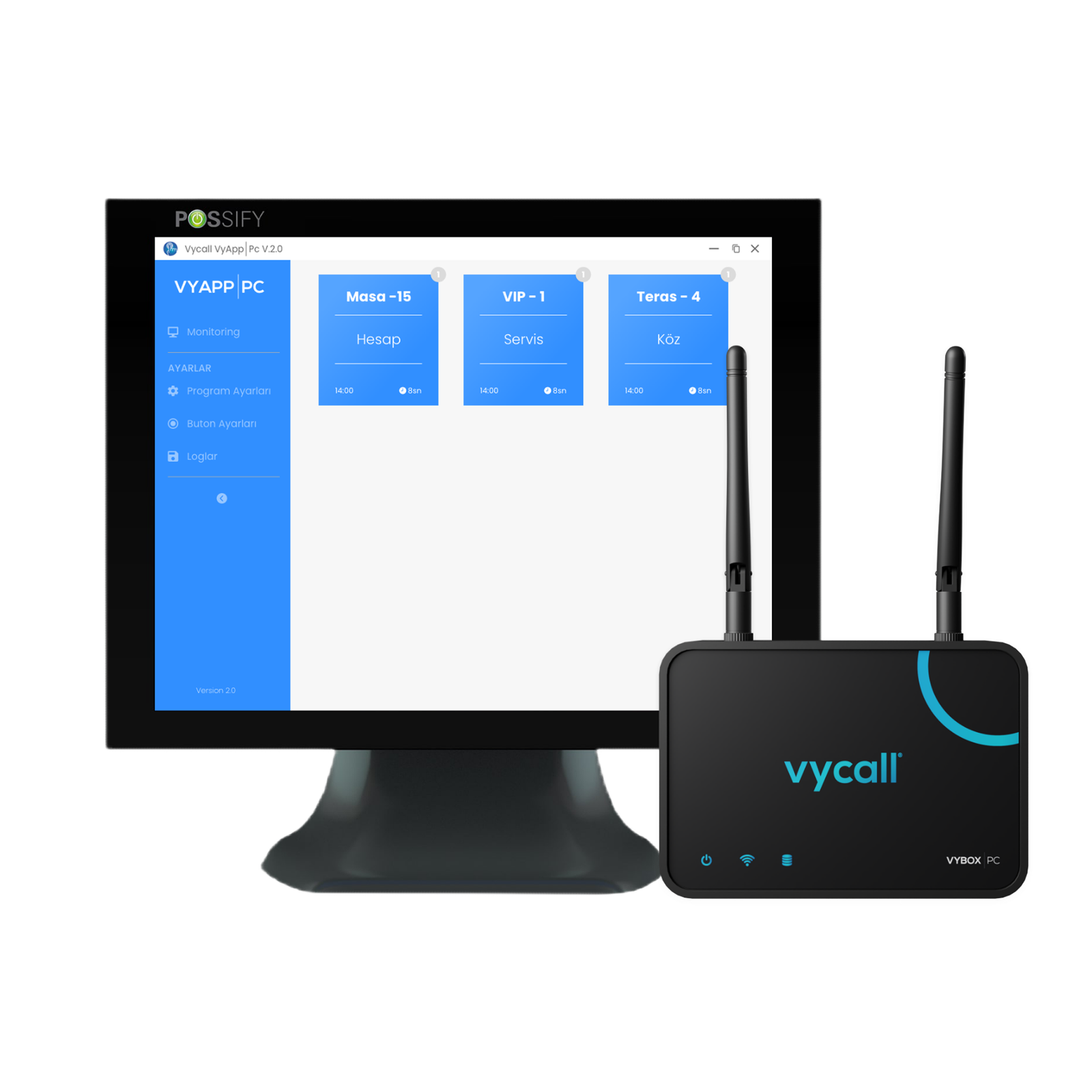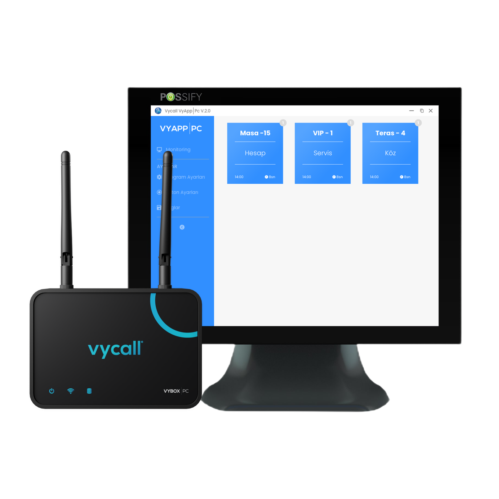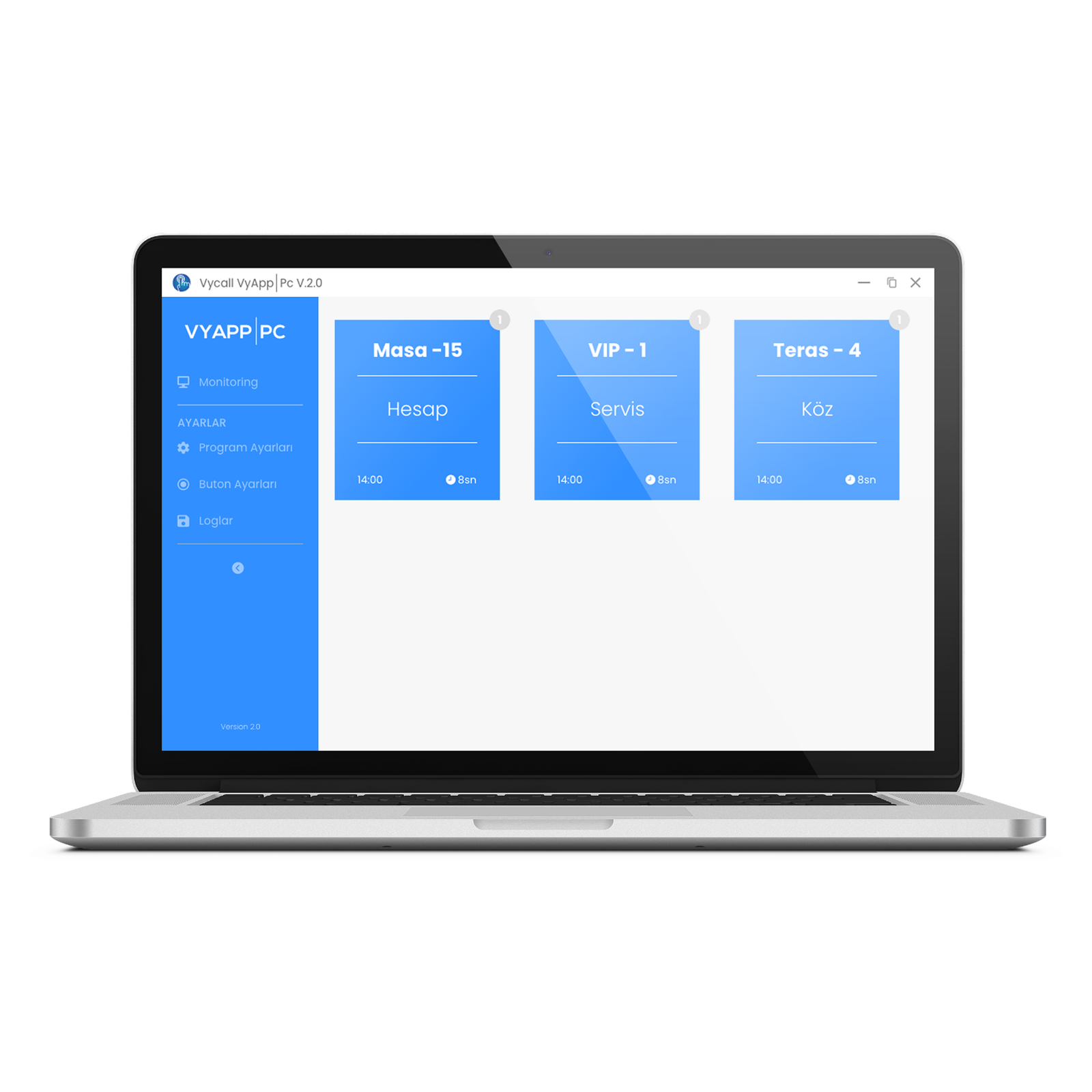 VyBox PC Receiver ile entegre olan VyApp, kablosuz çağrı butonlarından gelen sinyalleri görüntüler ve ekranda çağrı taleplerini anında gösterir.
